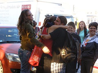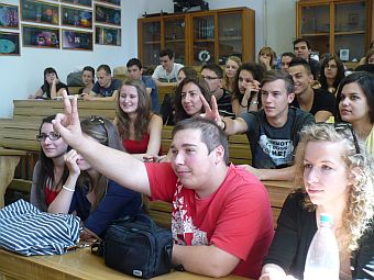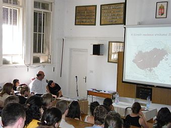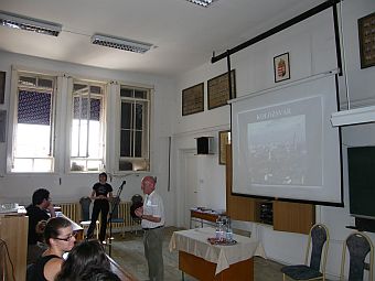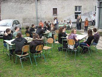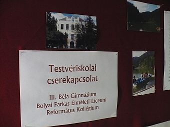 ÉRTÉKELŐ ÓRAAz értékelő órákat azzal kezdtük, hogy kiscsoportokba szervezett minket Radva László tanár úr. Minden csoport más-más feladatot kapott: adott témákat kellett értékelni, megbeszélni (az utazások, a témanap, a Bolyaiban folyó oktatás, a megvalósult projektek). A megbeszélés után minden csoport beszámolt, majd szabadon bárki hozzáfüzhette gondolatait, észrevételeit az elhangzottakhoz. Ezután fényképes illusztrációval egybekötött kötetlen élménybeszámoló következett, ahol olyan eseményeket is elmeséltünk, amelyek nem tartoztak szorosan a „hivatalos” programhoz: itt derült ki, hogy ki hol bulizott, a szombati kirándulások élményei, stb. Még az kiderült, hogy bizony szerelmi kapcsolat is kialakult: az egyik lánynak elkezdett udvarolni egy marosvásárhelyi fiu. Jókat nevettünk az élményeken, anekdotákon, a legjobb része ez volt az értékelő órának. Külön része volt az értékelő órának, hogy mindenki a saját osztályában az osztályfőnöki órán is beszámolt az élményiről. Fényképeket vittünk be illusztrálásképpen, és válaszoltunk a fölmerült kérdésekre. Sokan kedvet kaptak a leendő látogatásokban való részvételre. Azért mi nem szeretnénk kimaradni a jövő évi programokból!