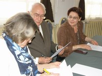 A szavalóverseny zsürijének tagjai: Kolthy Helga mûvésznõ, Késmárky Júlia és Bálint László.