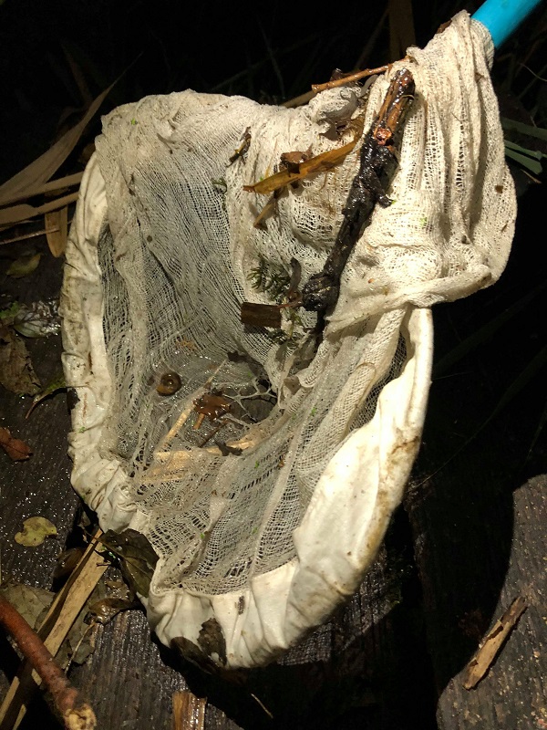 Idén kiválasztottunk egy 10-15 méter hosszú partszakaszt, ahol a célunk az volt, hogy minél több mintát tudjunk begyűjteni, ami gerinctelenekből, vízi és vízfelszíni növényekből, a tápcsatornából kiszűrt vízmintából és iszapból állt. Az élőlények kivadászásához merítőhálót, illetve csipeszt használtunk.