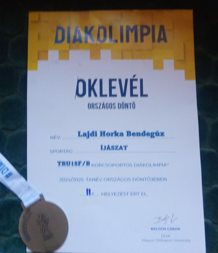 Lajdi Horka Bendegúz 8. A osztályos tanuló, az Íjász Diákolimpia DDR valamint a DAR kvalifikációs versenyén aranyérmet szerzett, ezzel bejutott az országos döntőbe, ahol serdülő, történelmi, ffi, "B" kategóriában a II. helyen végzett.