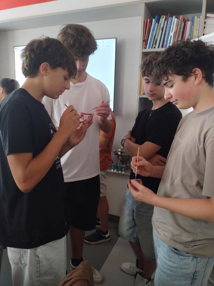 A PTE BTK Szlavisztika Intézet Orosz Tanszéke remek programokkal indította az új tanévet. Az egyetem és iskolánk együttműködésének köszönhetően oroszos diákjaink is részesei lehettek a rendkívüli élményeknek. Dr. Pozsgai István az óorosz építészettel, Dr.Komjati Diána az orosz ikonfestészettel ismertette meg a hallgatóságot. Az elméleti alapokat követően Horváth Ivett útmutatásai alapján lehetőség nyílott kipróbálni az ikonfestést a gyakorlatban a tojás alapú festék kikeverésétől az alapmotívumok megformálásán át az aranyozásig. Végezetül ellátogattunk a pécsi szerb ortodox templomba, ahol a diakónus mesélt a szakrális tér, és a liturgia elemeiről, illetve a szomszédos imaházban bemutatta az ortodox egyházművészeti gyűjteményt.