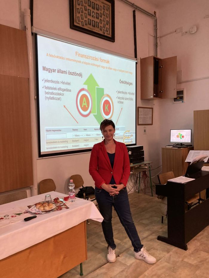 A program kiemelt előadását Dr. Vanó Renáta, az Oktatási Hivatal felsőoktatási elnökhelyettese tartotta, aki a héten megnyíló felvi.hu felületről, valamint a felsőoktatási felvételi eljárás menetéről és a pontszámítási technikákról adott részletes, informatív tájékoztatást.