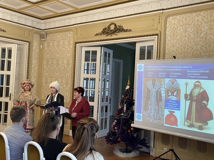 Egy interaktív országismereti bemutató keretében ismerkedtek a jelenlévők a téli időszak oroszországi ünnepeivel, majd egy játékos kvíz, az Артистъ színházi műhely művészeinek alakítása, illetve egy tamási általános iskola kisdiákjainak zenés-táncos produkciója varázsolta a helyszínre a téli ünnepek hangulatát. Bélás diákjaink arról meséltek a közönségnek, hogy hogyan viszonyultak neves orosz költők, írók az újév és a karácsony megünnepléséhez, milyen különleges rituáléik voltak, mi került az ünnepi asztalukra. A délelőtti program teázással zárult, ahol kisdiákok, nagydiákok, elballagott diákok, tanárjelöltek, tanárok, professzorok kötetlenül tudták egymással megosztani ünnepi élményeiket.