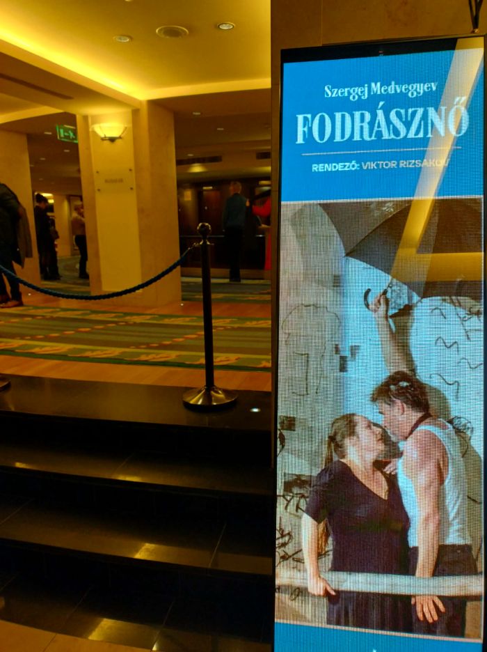 A délután folyamán egy kortárs orosz drámaíró, Szergej Medvegyev darabját tekintettük meg a Nemzeti Színházban Viktor Rizsakov kiváló rendezésében. A fájdalmasan derűs krimi és egyben szerelmi történet középpontjában - mint annyiszor - a boldogság megtalálásának vágya szerepelt, és életük újragondolására ösztönözte a közönséget.