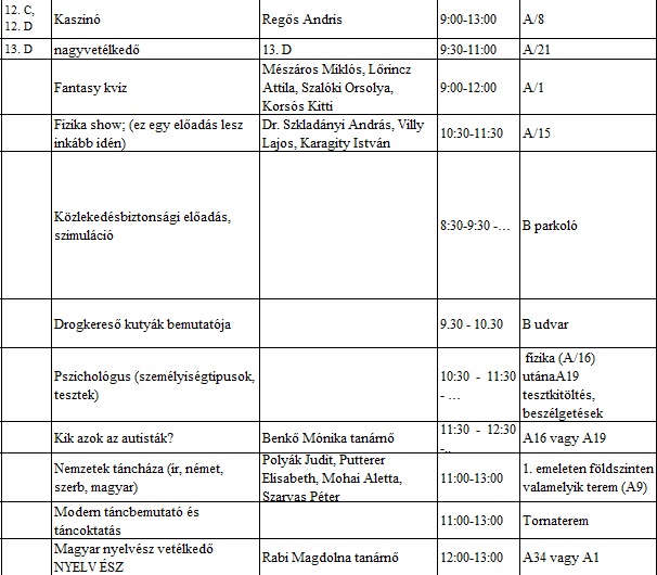 BÉLÁS NAP tervezett program 2013. március 21.