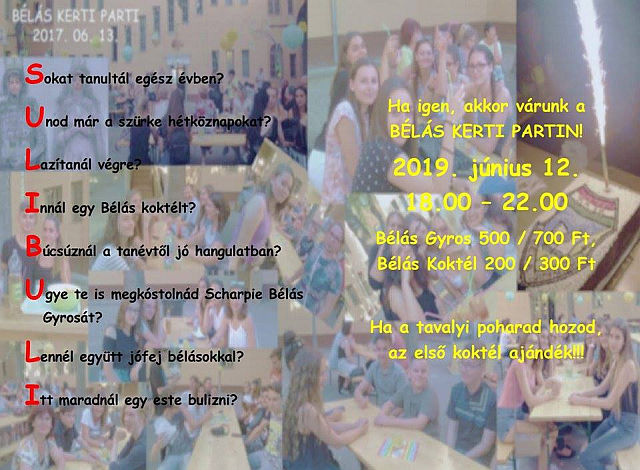 6 évfolyamosoknak (7. osztály) 2019. június 20. csütörtök, délelőtt 8-12-ig
