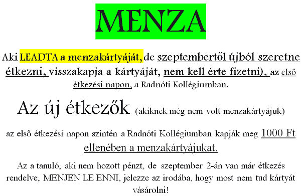 a menza igénylését az Önkormányzat ügyfélszolgálatára kell leadni, melyre minden hónap 1., 2. és 3. szerdáján van lehetőség