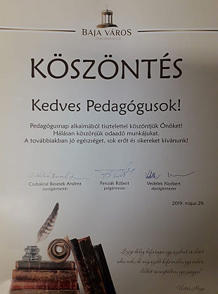 Pedagógus nap alkalmából Szarvas Miklós és Pethőné Kővári Andrea átvehette a városházán a pedagógus emlékérmet.