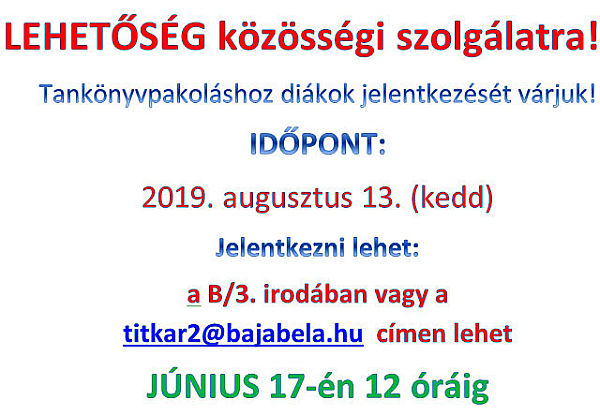 Tankönyvosztás az első, és második tanítási napokon lesz.