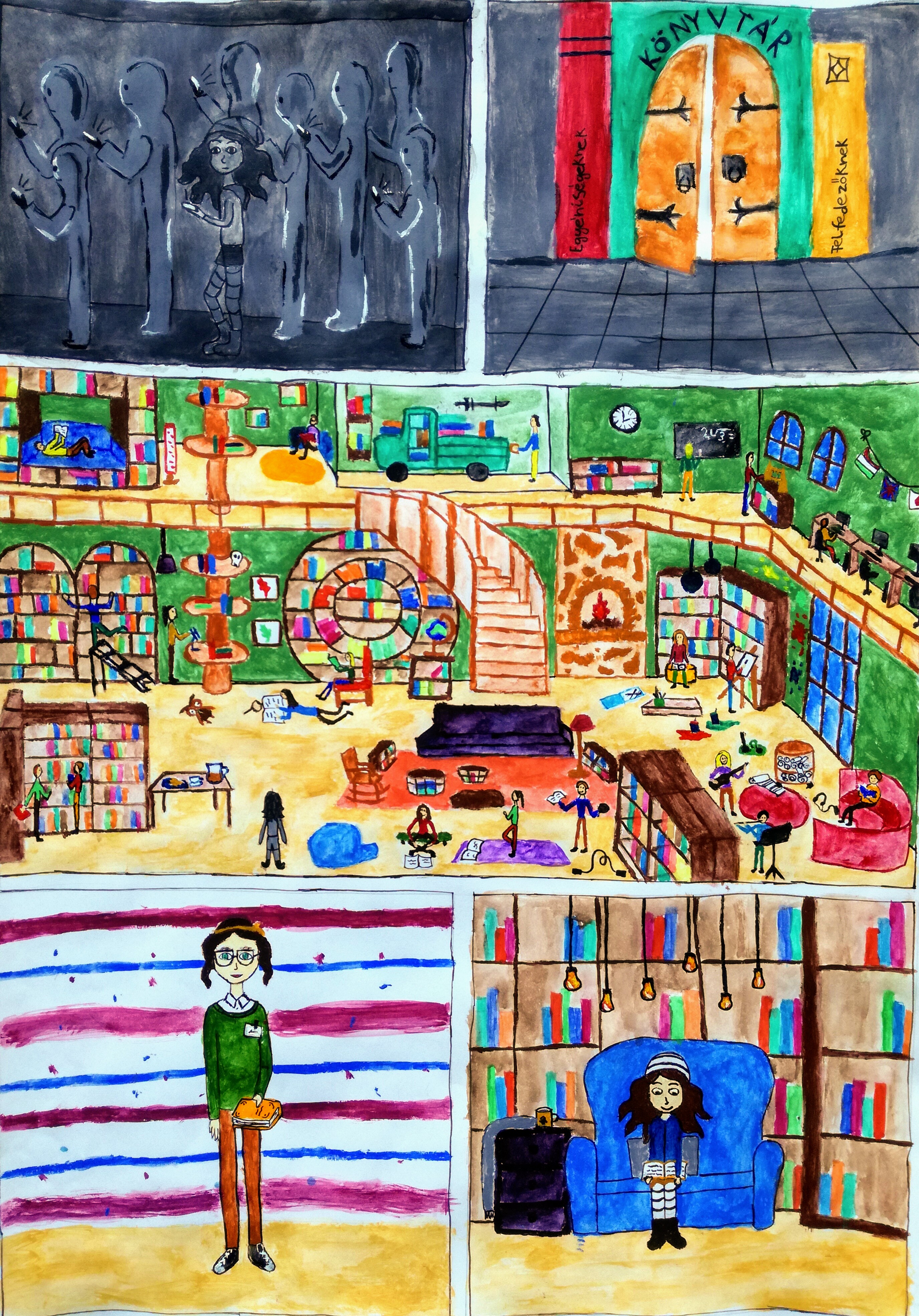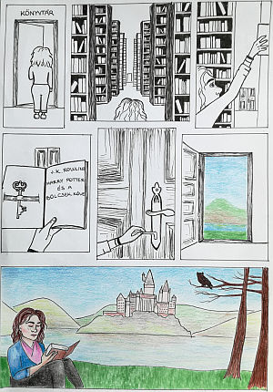 Tanulóink ezekkel a rajzokkal indulnak "Az én 21. századi iskolai könyvtáram" pályázaton