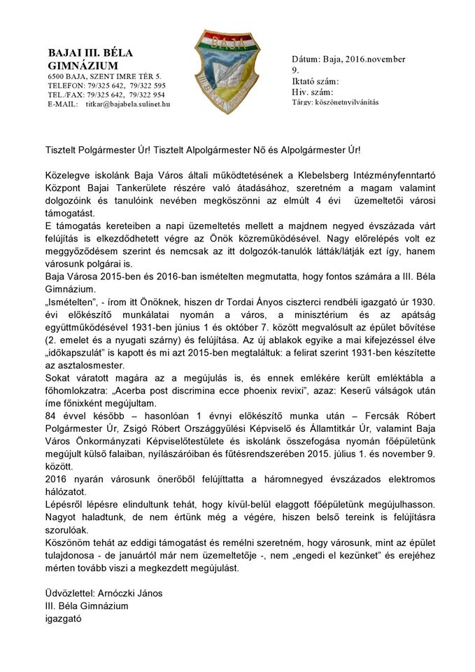 e-mailben: titkar@bajabela.hu