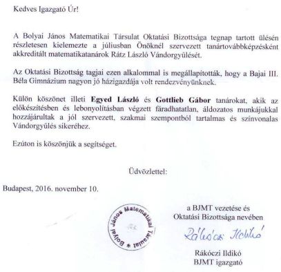 8. osztályosok részére 2016. november 10. csütörtök