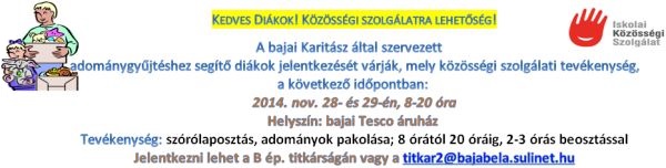 Aki december 13-án (szombaton) nem kér menzát, annak november 24-ig le kell mondania a Gondnoki irodában vagy a menza.bela@bajabela.sulinet.hu emailcímen.