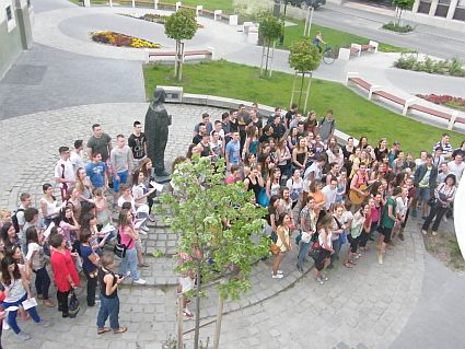 A négy végzõs osztály az iskolánál kezdte a szerenádot. Itt a tanárok egy csoportja várta és látta vendégül a búcsúzó diákokat.