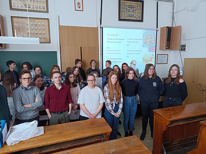 A maszkviselés az utóbbi időben már nem a farsang jele, sőt a farsangi jelmezes mulatság hagyománya is elmaradt a megváltozott világban. Helyette 21 kérdésből álló kvízt kellett kitölteni a hazai és az európai szokásokról a lelkes „maszkosoknak”. Az iskolai kórus farsangi dalokkal teremtette meg a hangulatot, majd az elmaradhatatlan tombolahúzás következett, és a rendezvény „legfinomabb” részére került sor: farsangi fánkkal zártuk a rendhagyó ünneplést.