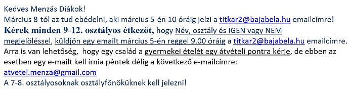 | Menza tájékoztatás!