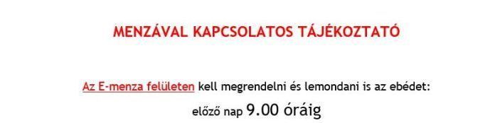 Szombati tanítás napon étkezés van, mely lemondható előző nap 9 óráig.
