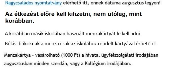 Erdősi Anita tájékoztatója: a menza igénybevételének részletes leírása