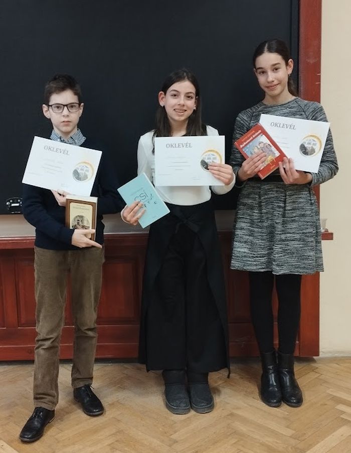 A gimnáziumunk 7-8. osztályos tanulói számára meghirdetett versmondó versenyen, melyen egy kötelező és egy szabadon választott verset adtak elő a versenyzők, a következő eredmény született: