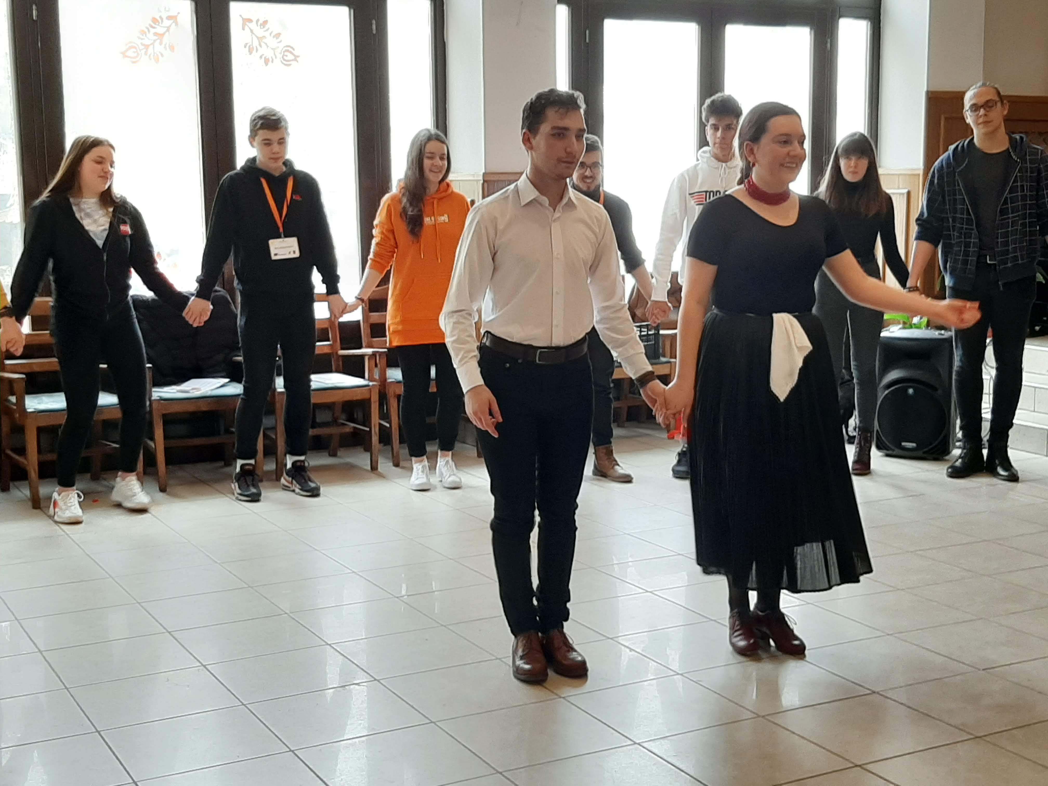 In accordance with the basic idea of the project – maintaining and developing the mental and physical health of young people – dancing was in the focus of this current meeting. Learning the folk dances of different nationalities have strenghtened students’ tolerance, acceptance and cooperative skills, moreover, the participants really enjoyed dancing and they had a good time.