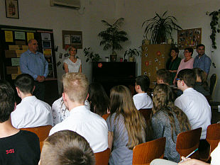 Az április 24-én délután megrendezett versenyre hat iskola nevezte diákjait: MNÁMK, Szent László ÁMK, Vaskúti Általános Iskola, Mohácsi Kisfaludy Károly Gimnázium, Szekszárdi Dienes Valéria Általános Iskola és természetesen a Bajai III. Béla Gimnázium. A tizenkét versenyzőt rangos háromtagú meghívott zsűri kérdezte és értékelte: Gernerné Kemmer Rosemarie, az MNÁMK általános iskolai felső tagozatának igazgatóhelyettese, a DSD I központi szakmai koordinátora, Dörte Christensen, az MNÁMK gimnáziumának német igazgatója és Jaszenovics Sándor, a PTE Babits Mihály Gyakorló Gimnáziumának tanára, aki a DSD I szóbeli vizsgákon regionális szinten lát el elnöki feladatokat. A hallgatóság a versenytársakon és a felkészítő tanárokon kívül németet tanuló hetedikesekből valamint iskolánk érdeklődő felsőbb éves diákjaiból és tanáraiból állt. A megjelenteket Arnóczki János, gimnáziumunk intézményvezetője köszöntötte. Az érdekes témák – pl. Bűvös kocka, Michael Jordan – egy kosaras példakép, Életem egy mozaikcsaládban – mellett a versenyzők nyelvi felkészültsége és talpraesett fellépése illetve a zsűri barátságos és lelkesedő stílusa is hozzájárult ahhoz, hogy a résztvevők egy jó hangulatú és tanulságos délutánt tölthessenek együtt.