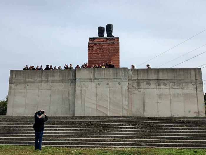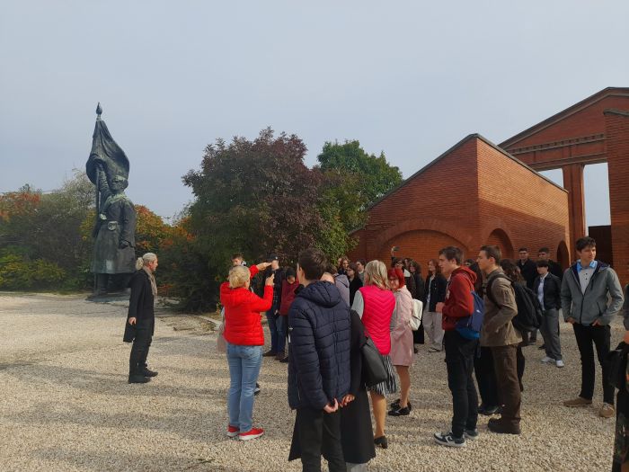 A délelőtt folyamán a Memento Parkban a kommunista diktatúra korába csöppentünk vissza. Szakavatott idegenvezetőnk segítségével megismerkedtünk a korszak szellemiségével, a propaganda természetével. A monumentális művészeti alkotások megtekintése, történelmi háttérbe helyezése közben képet kaptunk arról, milyen hatást gyakorolt a politika a korszak művészetére és művészeire.