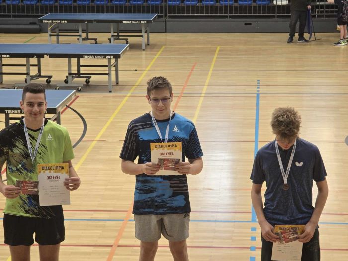 A Kiskunfélegyházán asztalitenisz sportágban megrendezett vármegyei döntőn iskolánkat "A" kategória V-VI.kcs-ban Frank-Sánta Erik 10.A képviselte, és remek szerepléssel I. helyen továbbjutott az országos döntőbe.