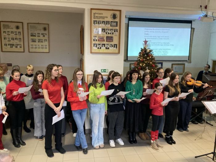 Meghitt karácsonyváró énekléssel zárták az iskola tanárai és tanulói az idei esztendőt 2024 utolsó tanítási napján. A színes műsort hangszeres kísérettel összeállította és vezényelte Fonyódiné Patyi Mónika.