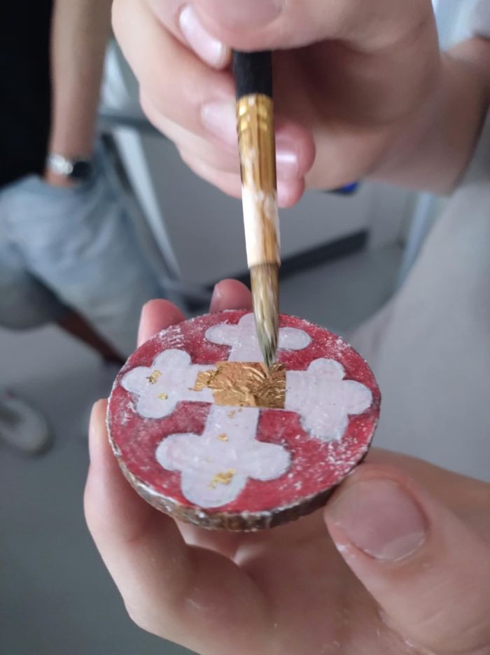 A PTE BTK Szlavisztika Intézet Orosz Tanszéke remek programokkal indította az új tanévet. Az egyetem és iskolánk együttműködésének köszönhetően oroszos diákjaink is részesei lehettek a rendkívüli élményeknek. Dr. Pozsgai István az óorosz építészettel, Dr.Komjati Diána az orosz ikonfestészettel ismertette meg a hallgatóságot. Az elméleti alapokat követően Horváth Ivett útmutatásai alapján lehetőség nyílott kipróbálni az ikonfestést a gyakorlatban a tojás alapú festék kikeverésétől az alapmotívumok megformálásán át az aranyozásig. Végezetül ellátogattunk a pécsi szerb ortodox templomba, ahol a diakónus mesélt a szakrális tér, és a liturgia elemeiről, illetve a szomszédos imaházban bemutatta az ortodox egyházművészeti gyűjteményt.