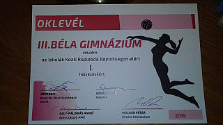 A 2019. év városi középiskolás leány röplabda bajnokság győztese a III. Béla Gimnázium csapata lett!