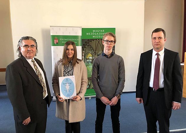 A fotón Kenyeres Karina és Schofhauser Daren Dr. Estók Jánossal (a Magyar Mezőgazdasági Múzeum és Könyvtár igazgatójával) és Dr. Rácz Andrással (a Földművelésügyi Minisztérium környezetügyért felelős helyettes államtitkárával).