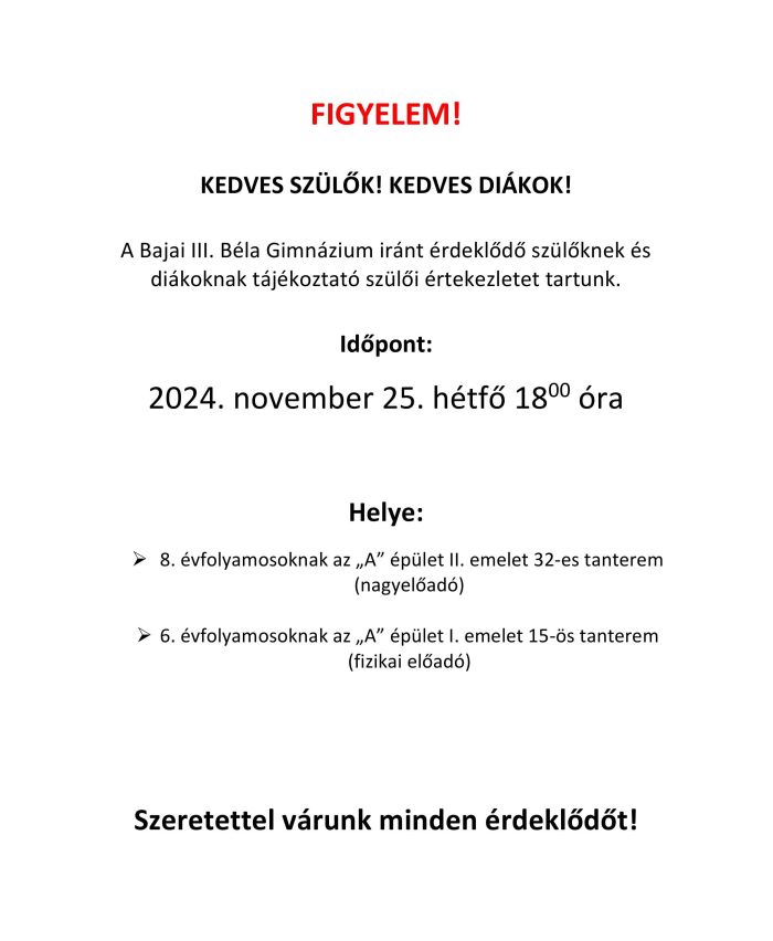 2024. november 12. én a Bajai III. Béla Gimnázium 32 diákja -a 10. és a 12. évfolyamokról- vett részt a Magyar Nemzeti Levéltár Országos Levéltára által meghirdetett levéltár-pedagógiai foglalkozáson.