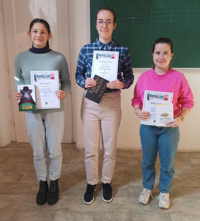 Az Implom József Középiskolai Helyesírási Verseny iskolai fordulóján a 9-12. évfolyam tanulói közül 29 versenyző vett részt. A következő diákok végeztek az élen: