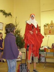 A vendégeket mûsorral köszöntik. Ezen a napon ajándékozzák meg az osztálytársak egymást.