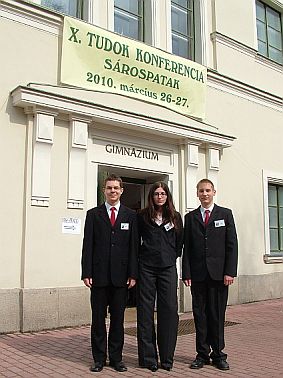 Iskolánkat három fõs csapat képviselte a rangos rendezvényen. Kusztor Roxána (13.D, felkészítõje Réti Attila), Pass Dániel (12.B, felkészítõje Rabi Magdolna) és Tomasics Gyula (11.B, felkészítõje Schleicherné Kertész Farkas Bernadett) a regionális fordulóban elért helyezés alapján érdemelte ki ezt a lehetõséget.
