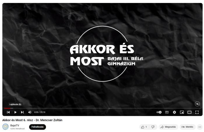Már megtekinthető a youtube-on az Akkor és Most adása, melyben Lusztig Ágnes Dr. Mencser Zoltánnal, a Szegedi Idegsebészeti Klinika vezető főorvosával beszélget, aki 1982-86 között az intézmény tanulója volt. Osztályfőnökei Nagy Éva és Szigethy Géza voltak. Szakmai tudását az egykori Szent-Györgyi Albert Orvostudományi Egyetem elvégzése után neves amerikai és angliai kutatólaborokban gyarapította, és így ma már agyi lebenydaganatokat, áttéti daganatokat operál és gerincsérülések komplex idegsebészeti ellátását is magas szakmai hozzáértéssel végzi. Mindemellett, oktatói munkát is végez magyar és külföldi diákok számára az egyetemen.