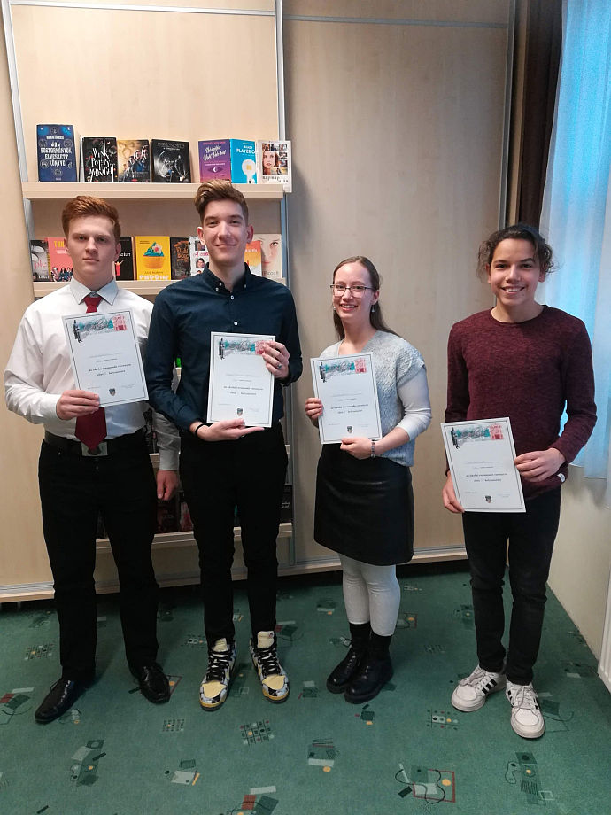 Folkmann Bence (11. C) az Implom József Középiskolai Helyesírási Verseny Kárpát-medencei döntőjében, a gimnáziumi kategóriában a 8. helyen végzett.